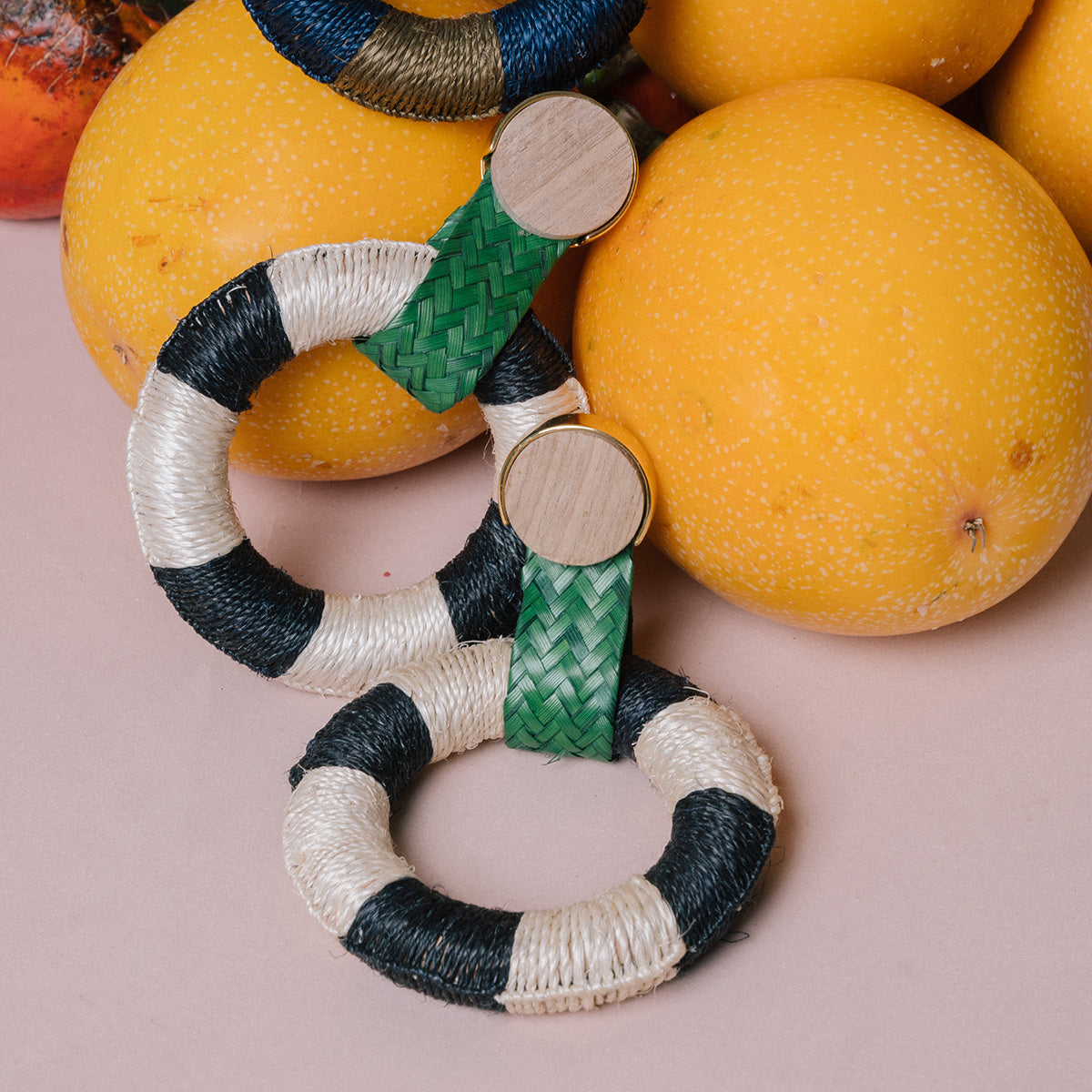 Our Natural & Black maguey earrings are handcrafted using maguey fiber that’s extracted and naturally dyed by indigenous artisans from the Kankuamo community. Combined with handcrafted caña flecha strips, these earrings bring warmth, artistry, and color to any winter outfit, crafted with care and purpose.