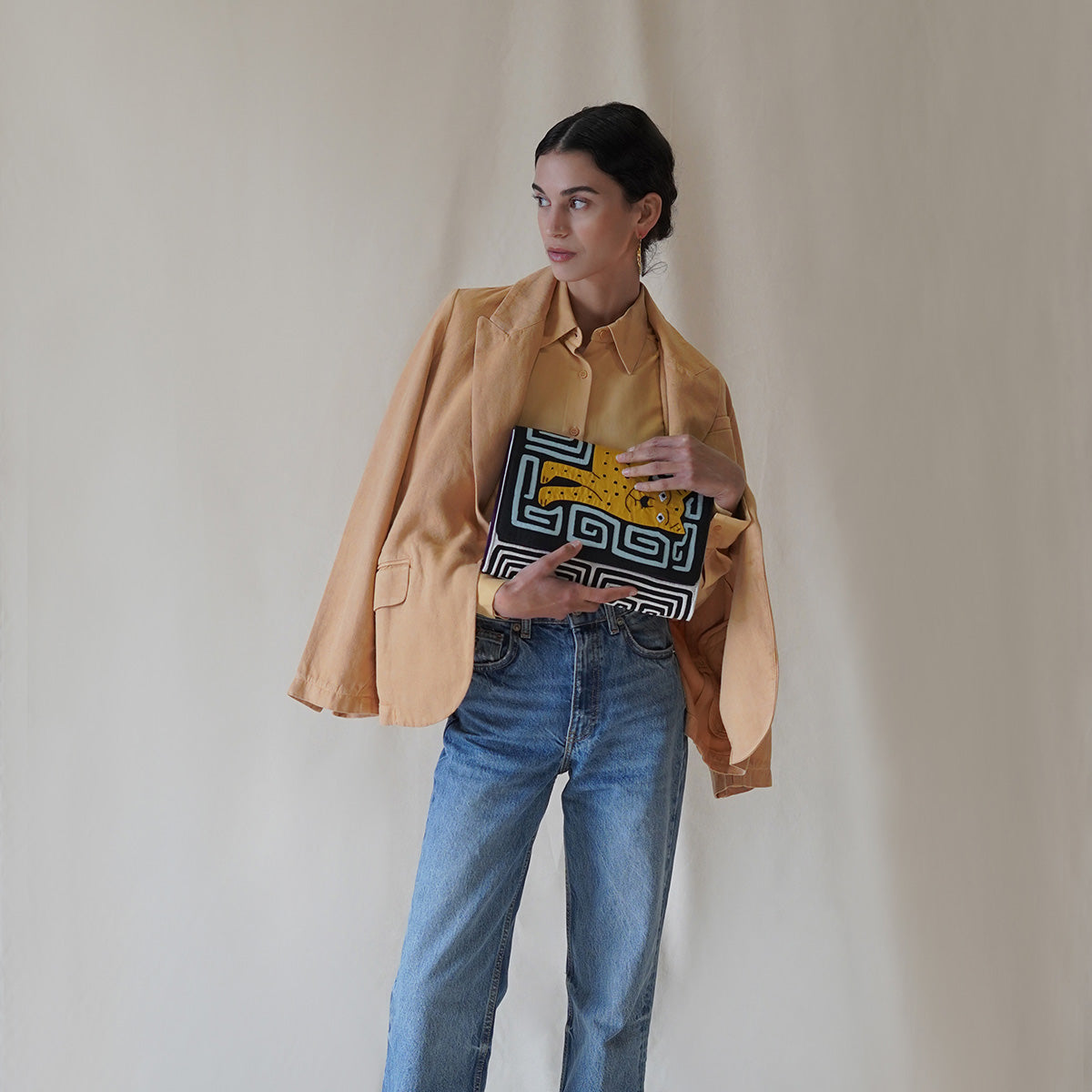Bold, vibrant, and unmistakably unique, this clutch is a standout piece that pairs beautifully with winter layers. Inspired by the strength and spirit of the jaguar, this clutch blends rich colors and traditional craftsmanship into a sleek silhouette that’s ideal for holiday gatherings, special dinners, or simply adding a pop of pattern to knitwear.