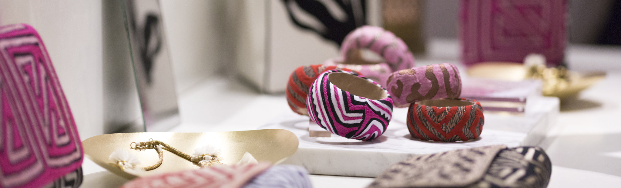 "En la moda, el lujo y la ética no siempre chocan". Dice Monica Mendel, escritora de Travel + Leisure. En su artículo titulado Hoy, en valiosos hallazgos de viaje: bolso de mano Maiyet x Mola Sasa Mendel destaca la asociación única entre Mola Sasa y Maiyet, una marca de moda moderna, ética y de lujo que se asocia con artesanos globales para desarrollar productos artesanales únicos. Como siempre ha sido nuestra misión preservar y fomentar las tradiciones de los artesanos locales con los que trabajamos en Colombia, queríamos asociarnos con Maiyet para presentar un colección de edición limitada de embragues y brazaletes destacando nuestras dos fortalezas. Maiyet seleccionó un conjunto único de sedas Varanasi de origen mundial para que los artesanos de Mola Sasa hicieran manualidades. La paleta de colores de la colección presentaba tonos cálidos de rosa, rojo, oro y bronce, todos mostrados muy bien en una ventana emergente de verano en la sala de exposición de Maiyet en SoHo (ver imágenes a continuación).